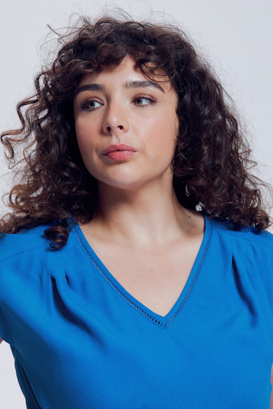 Principal: 52% viscosa ecorresponsable, 48% viscosa. Adorno: 100% algodón.