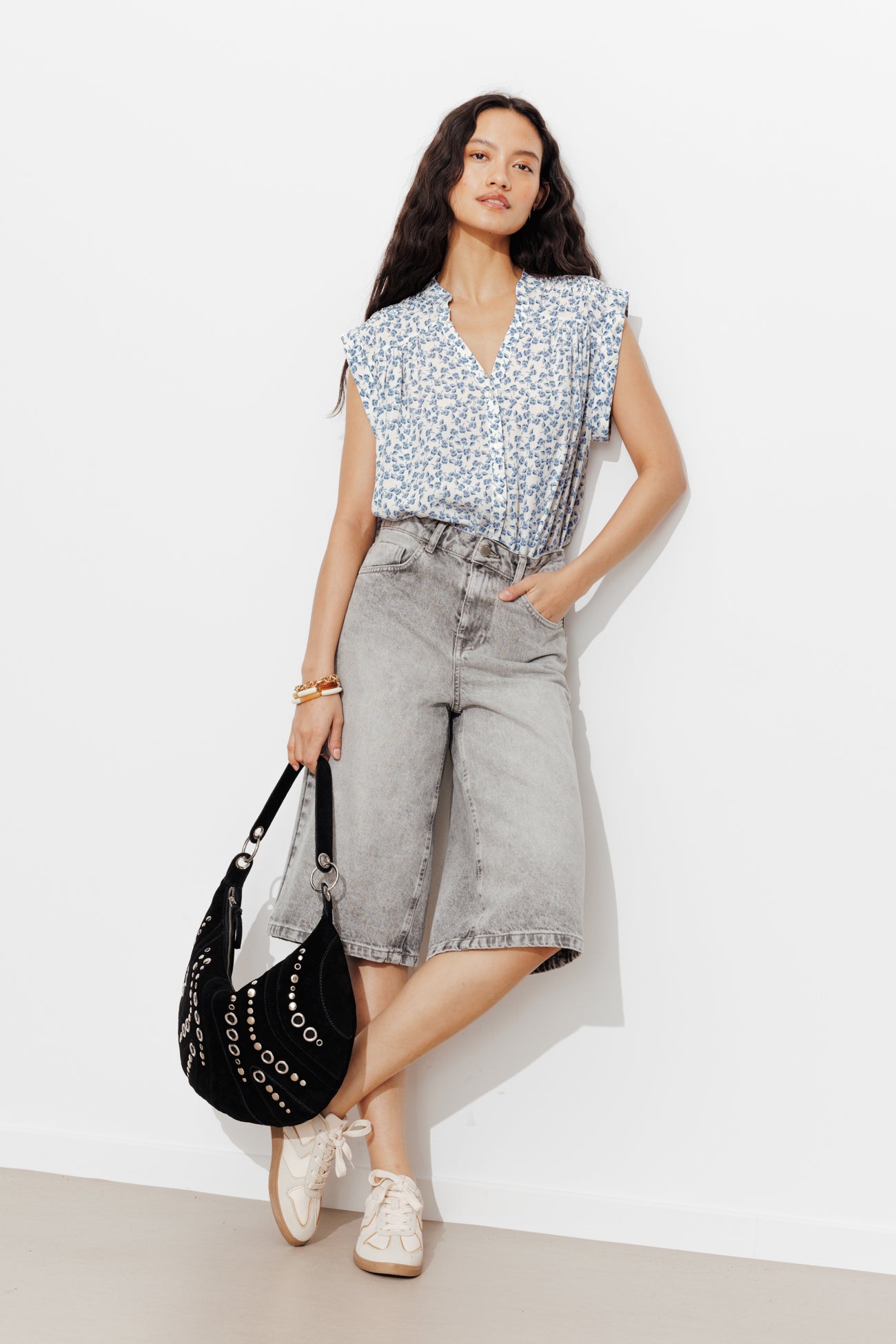 Sol a la vista. Esta camisa le dará un toque fresco a un jean, luminosidad a un short, romanticismo a una falda blanca... ¡Solo faltará añadir unas pulseras y estarás lista para disfrutar del buen tiempo! Tejido crepé. Corte evasé. Cuello panadero. Frunces en los hombros. Cierre abotonado. Manga muy corta con vuelta. Bajo redondeado. 100% viscosa procedente de la pulpa de madera de bosques gestionados de forma sostenible.