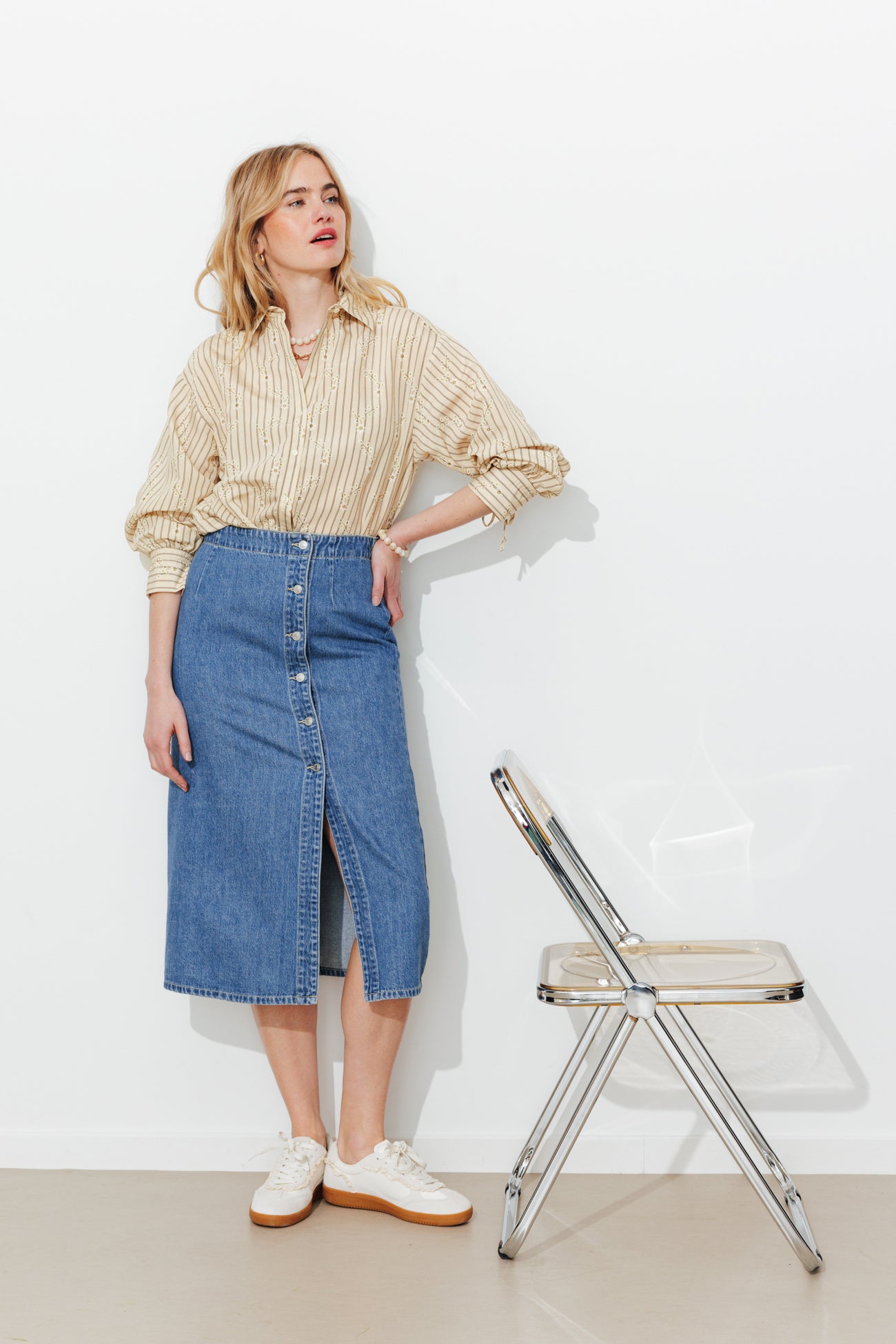 Fíjate en las lazadas en los puños con abertura. También adoramos la mezcla de rayas y flores, muy lograda. ¡Nos encanta la idea de ponernos esta camisa original! Corte recto. Cuello camisero. Cierre con botones. Hombros ligeramente caídos. Mangas largas abullonadas. Bajo redondeado. Pliegue trasero. Esta camisa contiene viscosa ecorresponsable.