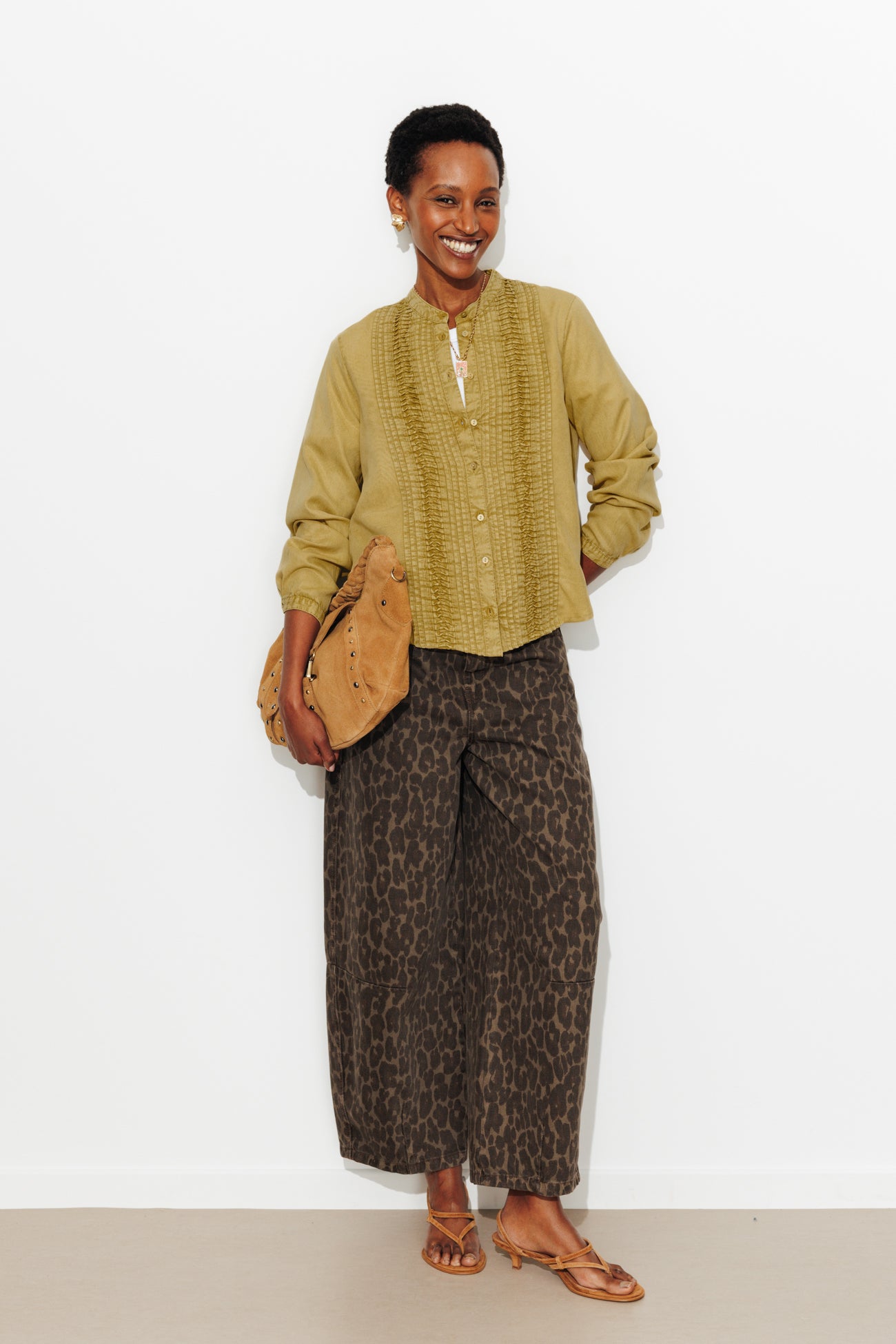 Los códigos retro vuelven a salir a la luz: aquí, las alforzas causan sensación en esta camisa de cuello mao. Tejido suave y fluido. Tintura única. Corte recto. Cierre totalmente abotonado. Manga larga con puño abotonado. Botones nacarados. Bajo redondeado. Rematado. Esta camisa de mujer está confeccionada al 100% con lyocell, una fibra procedente de la pulpa de madera de eucalipto de bosques gestionados de forma ecosostenible.