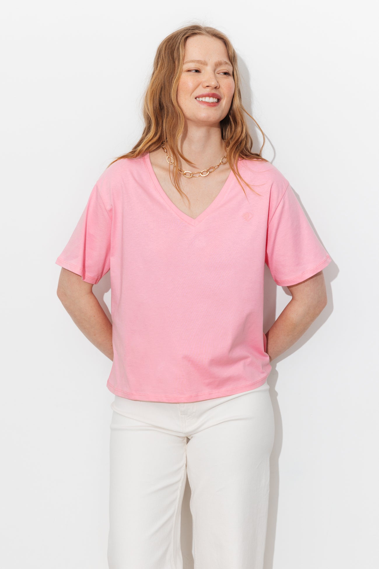 Camiseta básica cuello de pico - Rosa