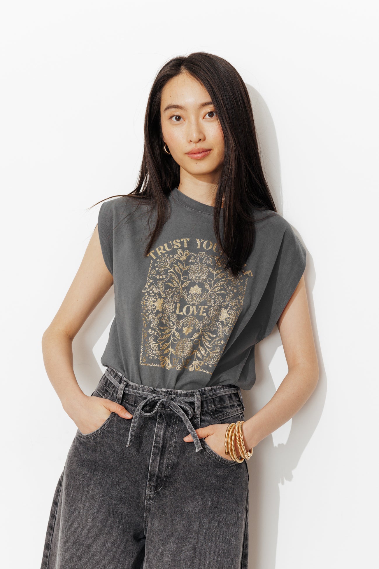"Trust yourself and love". Este mensaje ("Confía en ti mismo y ama") es bueno para ti y para todos aquellos y aquellas que te observan (o admiran deberíamos decir...). Sal y transmite el mensaje a tu alrededor. Punto de algodón suave, tintura única. Corte recto. Cuello redondo canalé. Motivos y mensaje con brillo delante, espalda lisa. Manga muy corta. Bajo recto. Esta camiseta de mujer está confeccionada al 100% con algodón procedente de la agricultura ecológica, cultivado sin pesticidas, abonos químicos ni OGM para preservar la biodiversidad.
