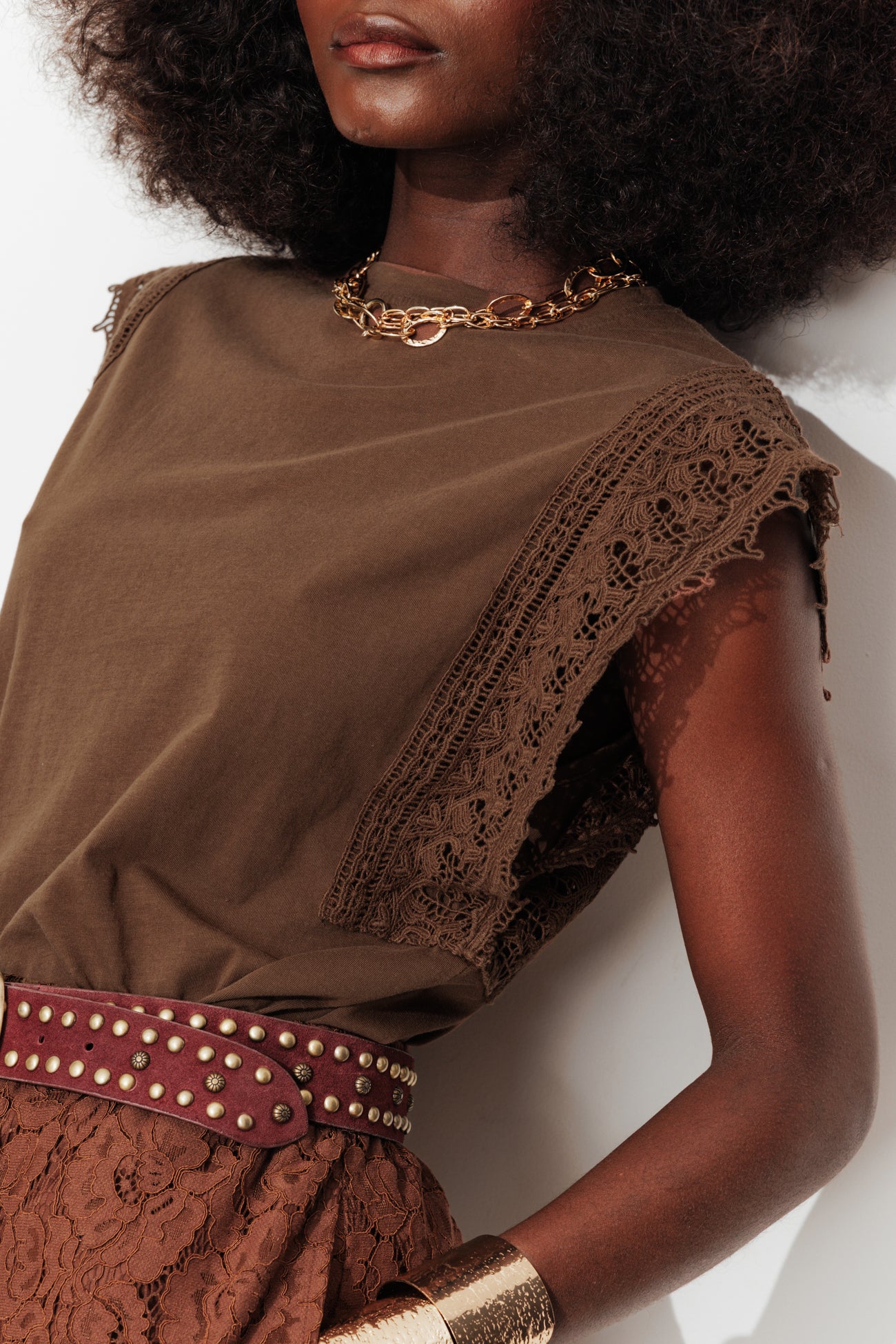 El detalle de crochet de esta camiseta le da un toque especial y elegante a un look, ¡es muy actual! Nos la ponemos para ir a la oficina, salir de noche o en vacaciones. Punto suave 100% algodón. Corte recto. Cuello redondo canalé. Sisa americana con crochet a tono. Bajo recto. Costuras a tono. Esta camiseta de mujer contiene algodón procedente de la agricultura ecológica, cultivado sin pesticidas, abonos químicos ni OGM para preservar la biodiversidad.
