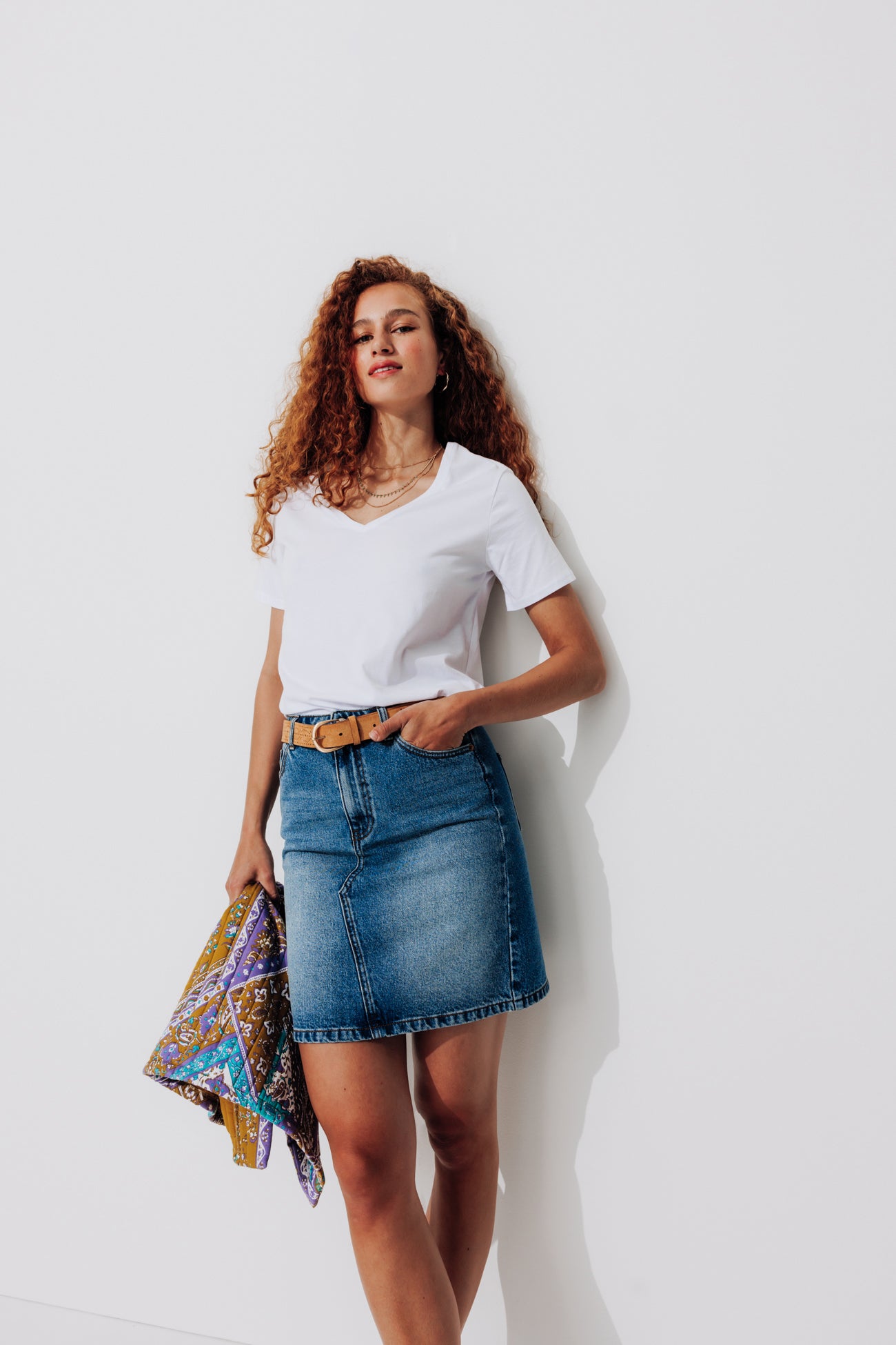 Un buen básico y una buena elección. Esta camiseta lisa es un must-have atemporal. Punto de algodón procedente de la agricultura ecológica. Corte recto. Cuello de pico. Manga corta. Bajo recto. Esta camiseta ha sido ecodiseñada para reducir su impacto medioambiental desde el momento de la concepción y en cada etapa de su ciclo de vida.