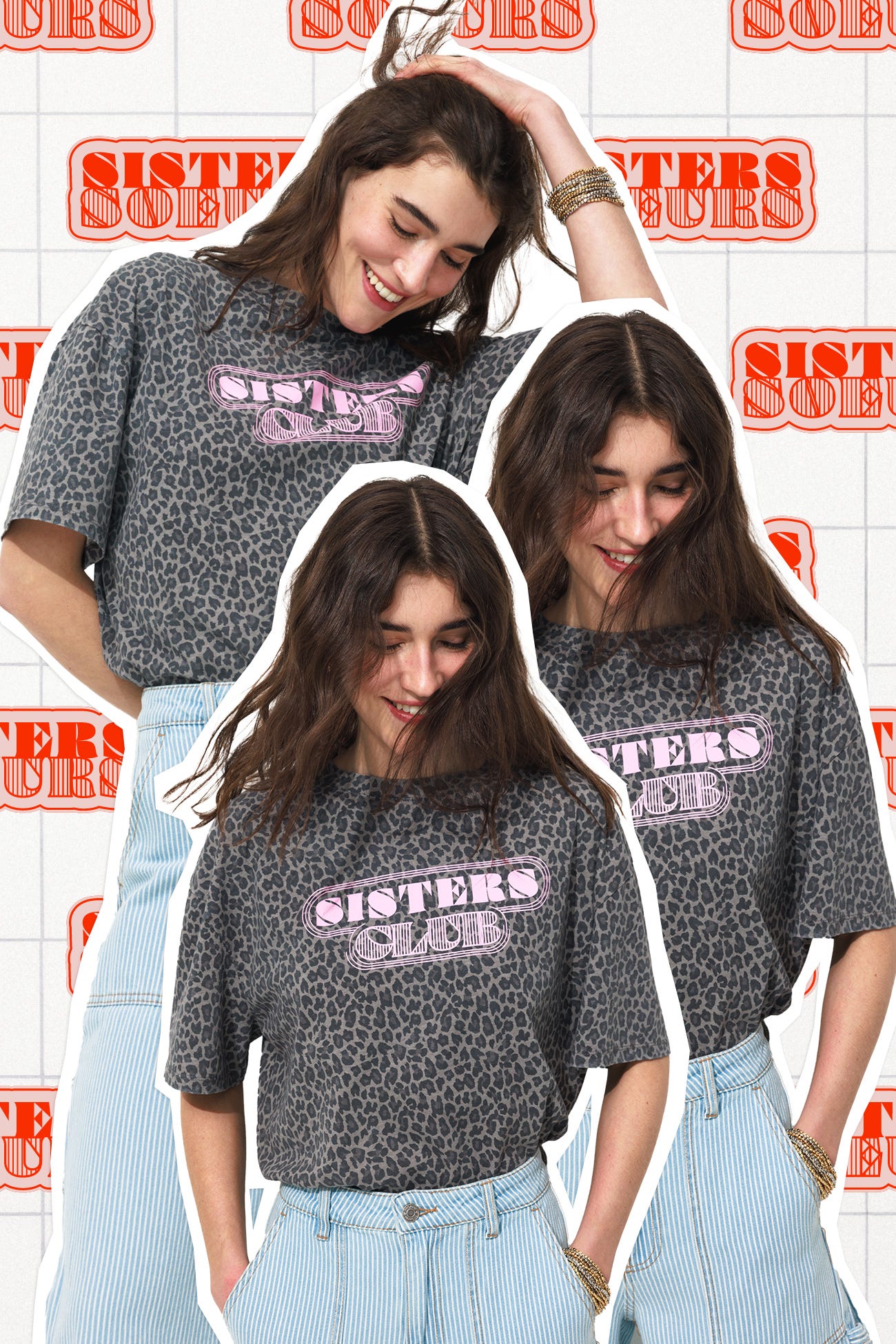 ¡Para todas las sisters! Esta camiseta es en honor a la hermandad entre mujeres... y a la la tendencia leopardo. La técnica de pigmentación utilizada le da un aspecto único y original. Puede desteñir o descolorarse con el tiempo. Punto de algodón suave. Cuello redondo. Manga al codo. Bajo recto, aberturas en los lados. Contiene algodón procedente de la agricultura ecológica.