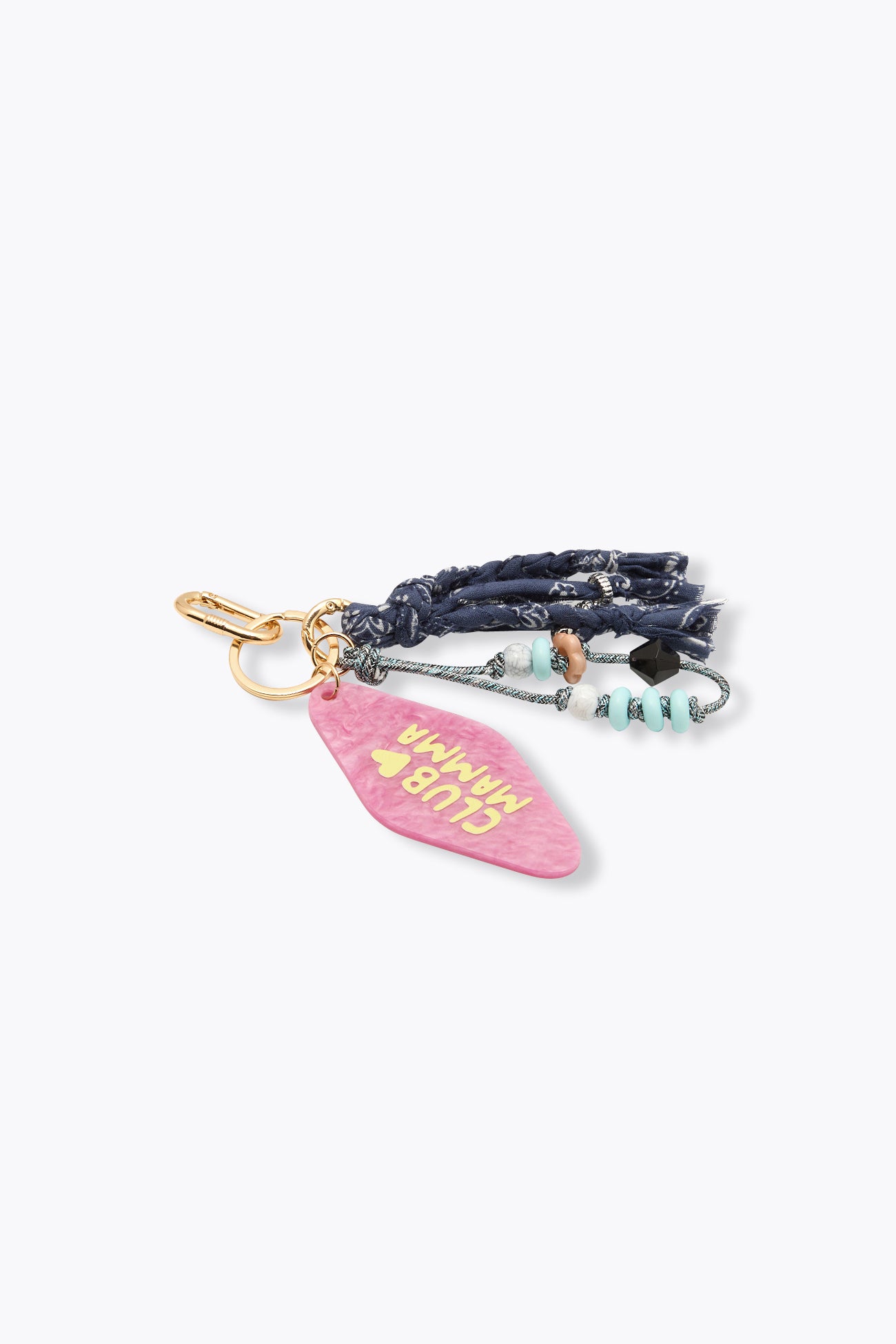 Para encontrar rápidamente tus llaves en el fondo de tu bolso. Para no perderlas nunca más. Y para mostrar con un detalle sencillo que tienes estilo... opta por este llavero de fantasía. Cuentas, cordones y placa brillante en forma de rombo con el mensaje "Club Mamma". Dáte un pequeño capricho o regálalo. Es una idea de regalo original.