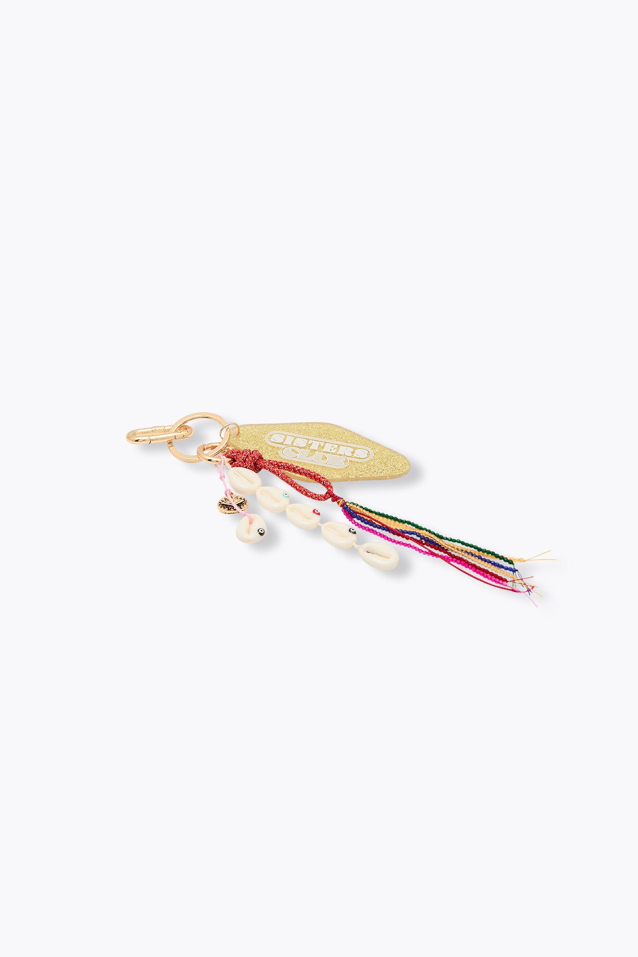 Para encontrar rápidamente tus llaves en el fondo de tu bolso. Para no perderlas nunca más. Y para mostrar con un detalle sencillo que tienes estilo... opta por este llavero de fantasía. Cuentas, cordones y una placa brillante en forma de rombo con el mensaje "Sisters Club". Dáte un pequeño capricho o regálalo. Es una idea de regalo original.