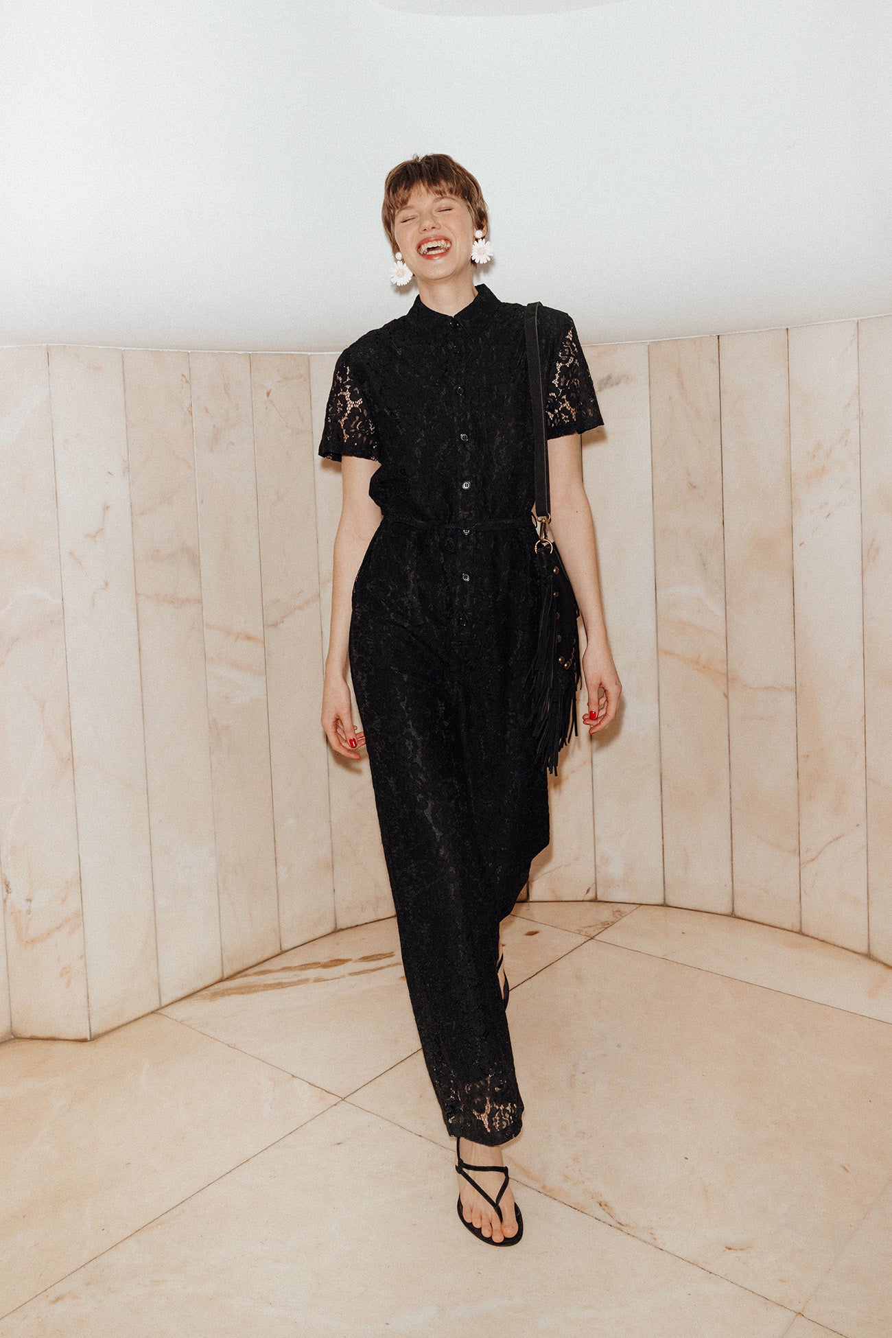 Este mono totalmente de encaje tiene un poder casi mágico: nos da un aire elegante, esbelto y estiloso. Lo personalizamos añadiendo bonitas joyas. Elevamos aún más la imagen con un bolso de piel. Lo estilizamos con unos tacones. Cuello camisero. Cierre frontal con botones. 1 bolsillo pecho. Manga corta. Trabillas. Cinturón de encaje para anudar. Forro. Este mono contiene fibras recicladas.