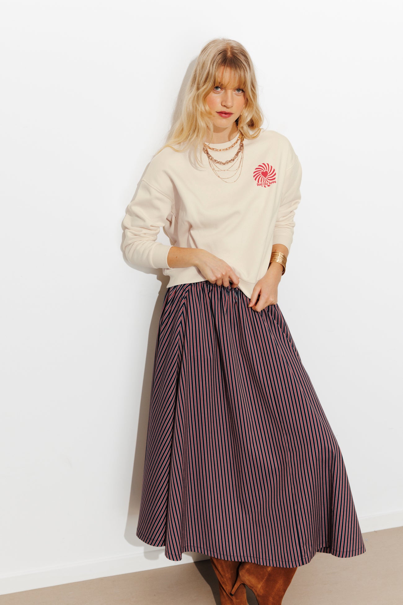 Esta sudadera es una declaración de amor: por ti misma, por los demás, por la música, por la vida, por la noche. Fíjate en el mensaje estampado en el pecho y los mensajes grandes en la espalda. Muletón suave, interior perchado súper suave. Cuello redondo. Hombro caído. Manga larga. Rematado punto elástico. Contiene algodón procedente de la agricultura ecológica.